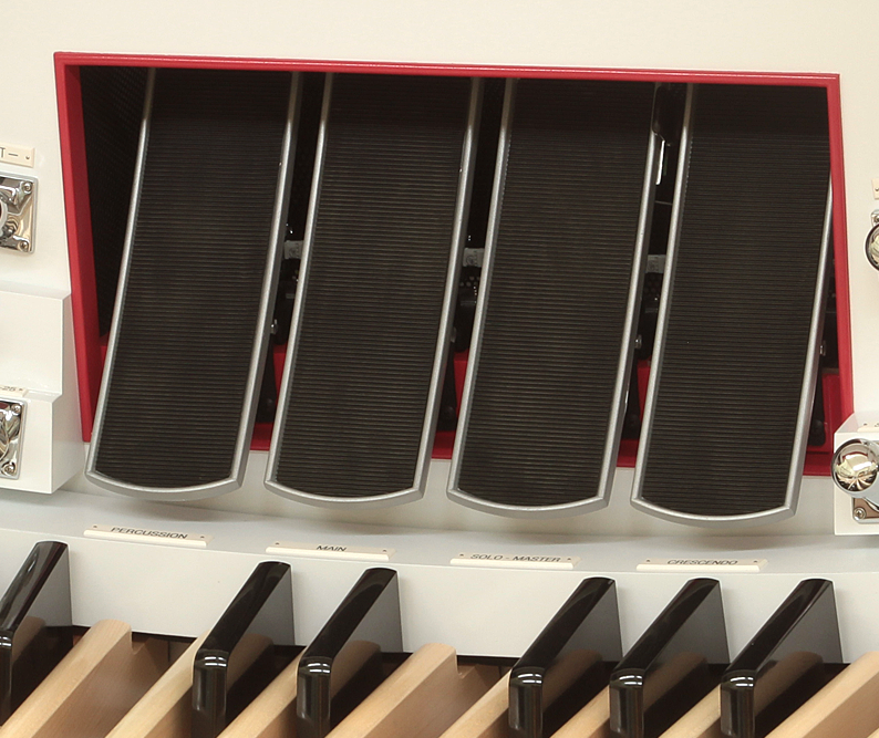 Allen introduces Real Xpressionâ„¢ technology. This exclusive feature enables Allen Organs' expression shoes to interact with the organ sounds and react the same way as a pipe organ would with Swell shades.