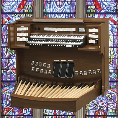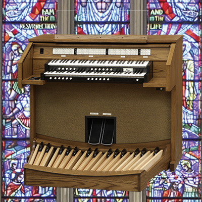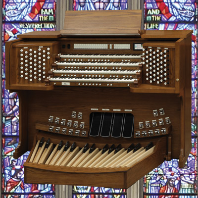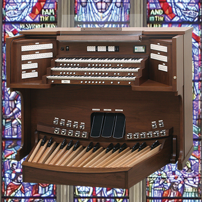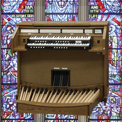 The HISTORIQUE IIIG, 34 Stop, Two-manual organ is equipped with Allen's efficient LED stop controls.