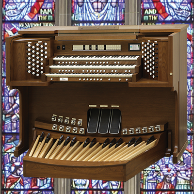 Allen Church Organs provide lavish styling and rich sound. Featuring advanced sampling technology and handcrafted console construction, Allen instruments deliver legendary Allen sound and quality. The striking beauty of their fine handcrafted wood construction also meets Allen's demanding standards for durability. Most models can be built with either LED stop controls or premium moving drawknobs.