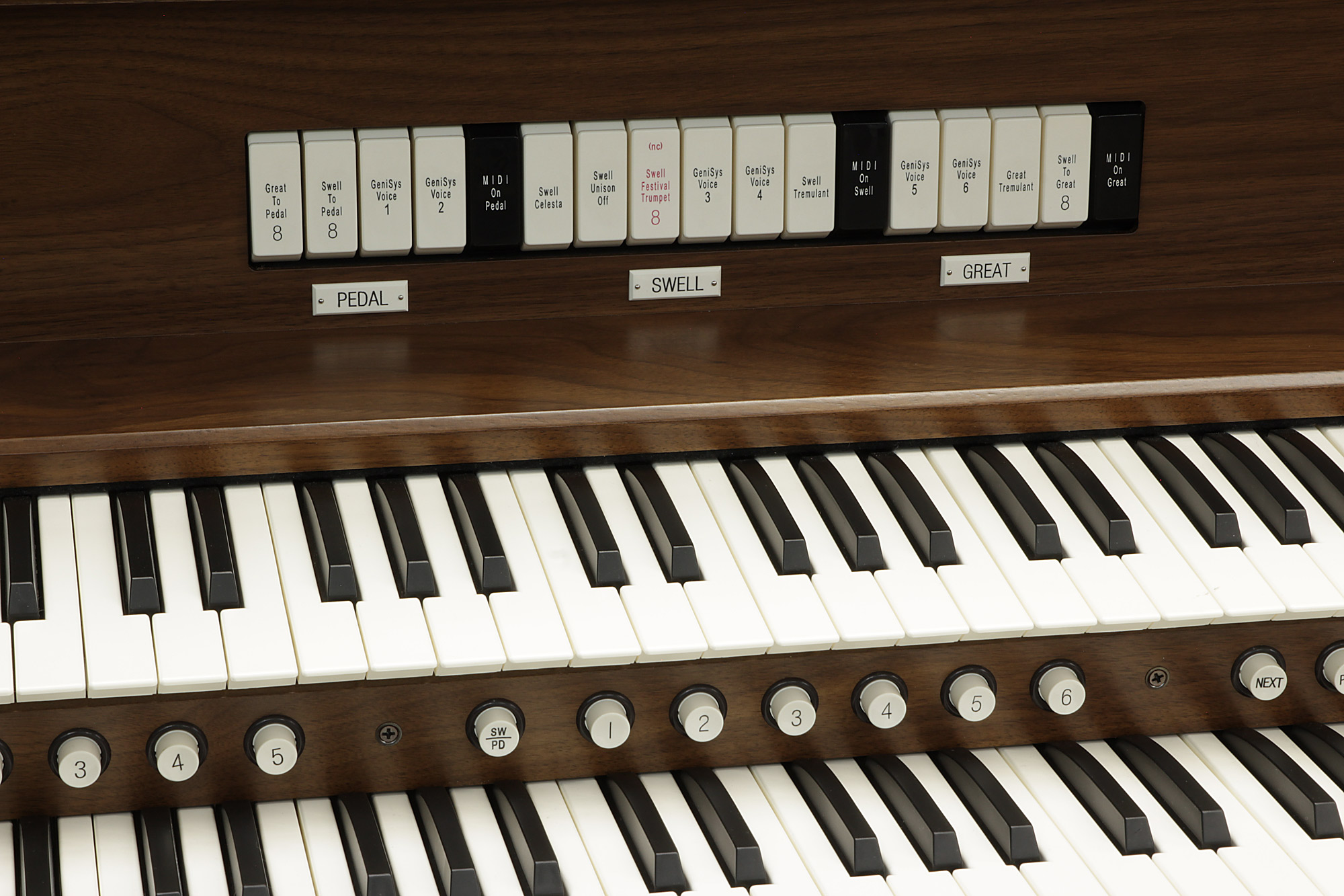 The standard keyboards supplied with Allen church organs allow Allen to provide instruments with Allen console features, quality, and sound at affordable prices.