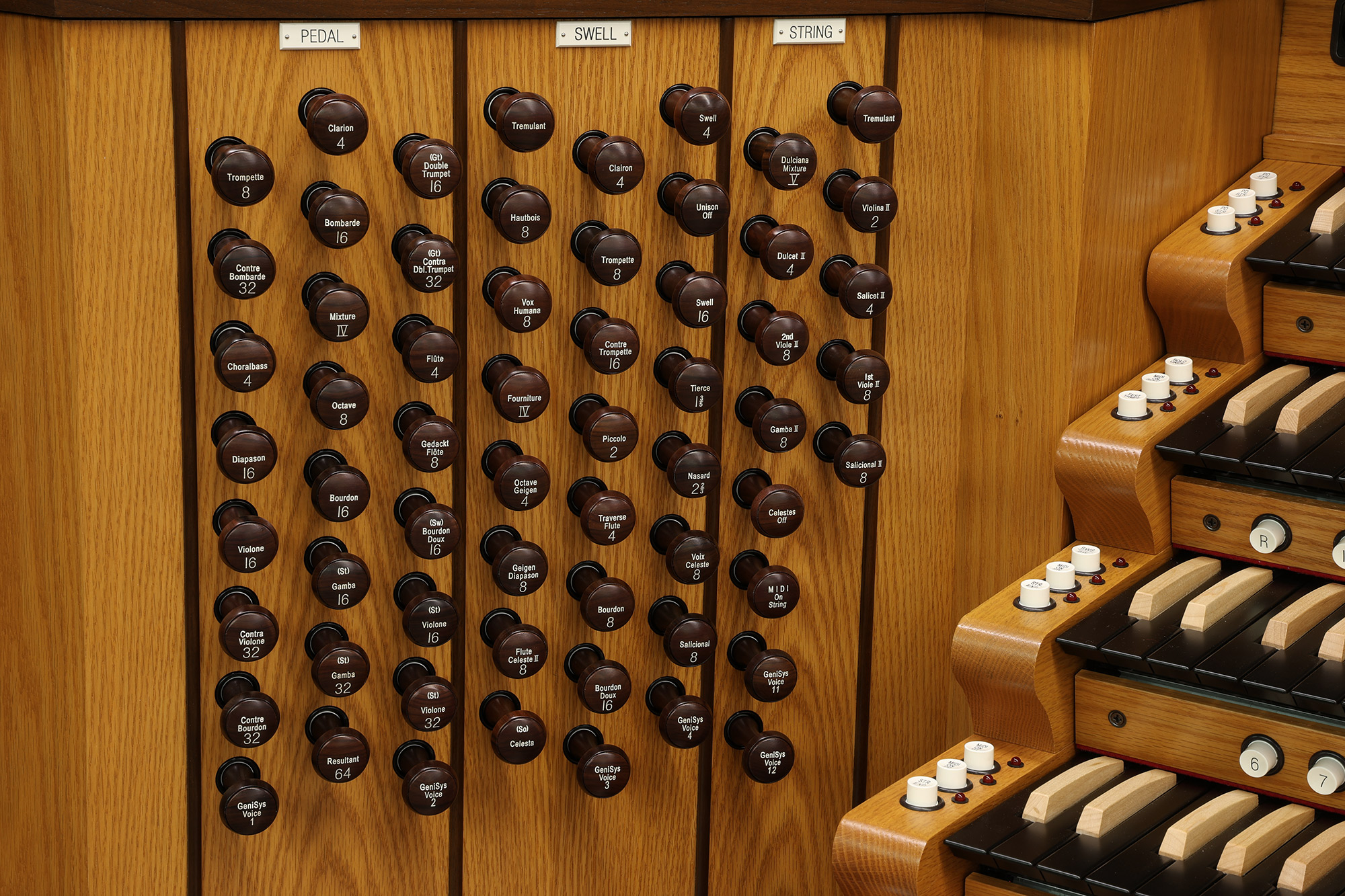 Allen is the only digital church organ builder to fully finish the interior wood of the console to protect it during its many years of use. All key electronic components are housed within a protective metal chassis to guard against electrical shocks, another Allen exclusive.