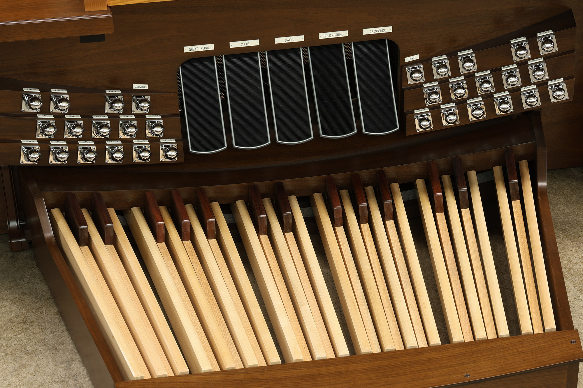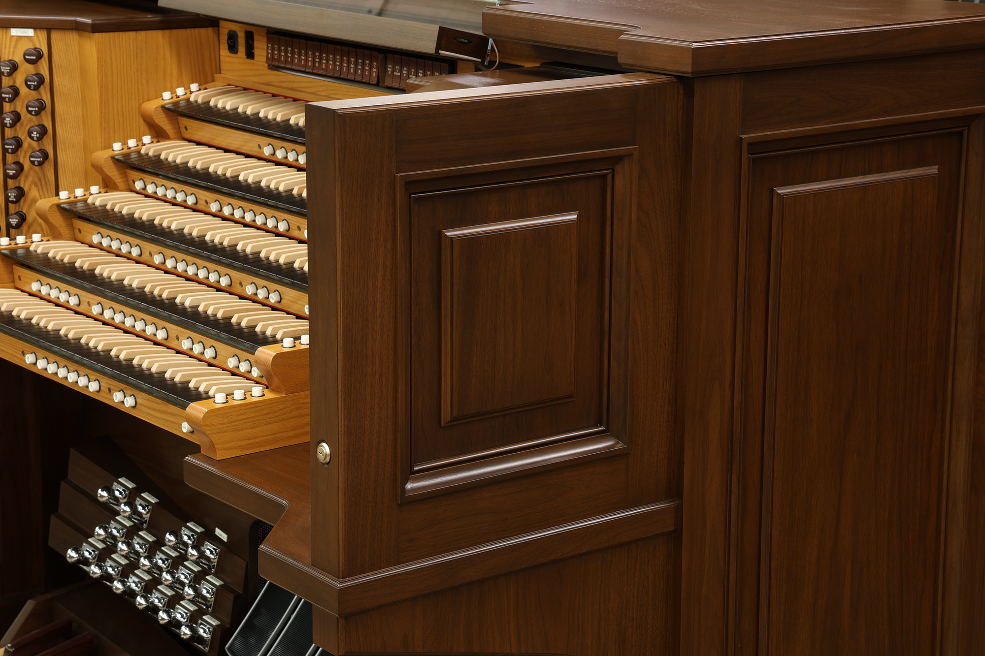 "The console is stunning, yet timeless; constructed of solid hardwoods with a beautiful Walnut exterior and satin black finish interior. Hibben UMC looks forward to many decades of music from this incredible instrument!"