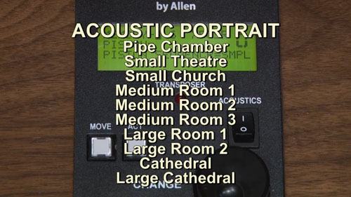 Dry, crisp acoustics designed to make spoken words easy to understand can make music sound brittle and uninteresting. Organ sound, especially, comes alive in more resonant spaces. Most organs include obsolete digital reverb, to artificially imitate acoustics. But not Allen. Allen's revolutionary Acoustic Portraitâ„¢ produces the "real thing"!
