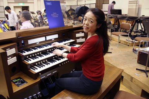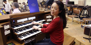 about the Allen L-322. Translated the descriptions read: "This is an Allen Organ. Allen is the global standard organ with natural and resonant sound." Seiko Katagiri, shown here, is the house organist of the Symphony Hall in Osaka where she plays a pipe organ. After playing the Allen digital organ at the Festival Hall she commented, "This Allen organ can create characteristic sound of the wind moving across the pipes of a real pipe organ. I can't believe this is a digital organ, because the organ has delicate delay from keying to sound, which a pipe organ has. I hope you enjoy the organ sound at the Festival Hall!" Click to view the Blog on 26 Apr. 2014 |