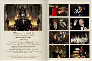 Now, the Cathedral is celebrating 10 years of concerts and beautiful music with the release of their publication "Música en la Catedral." The comprehensive on-line interactive book showcases pictures of the Cathedral, the build and installation of the Allen organ, the "voicing" of the organ by Rudy Lucente, plus highlights from the 38 concerts that spanned the past decade! Spain's premier concert organist and Valladolid's Cathedral organist, Pilar Cabrera, has performed most of the 38 concerts. German organist Gereon Krahforst and French organist Jean-Philippe Le Trévou have participated several times to large crowds with overwhelming response. Valladolid's Cathedral is the only one in Europe that has a selection of 27 CD's, recorded with Pilar Cabrera (Allen Organ) and together with other soloists. www.catedral-valladolid.com/discos Click here to learn more about this prestigious Allen Organ installation submitted by Michael Reckling |