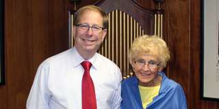 Allen Organ President Steve Markowitz congratulates Allen's first 60 Year Anniversary employee Sandra Fischl |