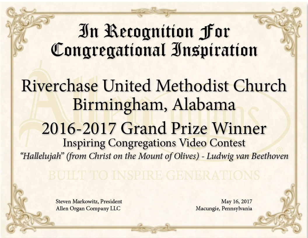 GRAND PRIZE WINNER SELECTED! Congratulations to Riverchase United Methodist Church of Birmingham, Alabama, for being the Grand Prize Winner of Allen Organs Inspiring Congregations video contest! Organ: Custom Bravura L-463 Song: "Hallelujah" (from Christ on the Mount of Olives) Composer: Ludwig van Beethoven Describe how your Allen organ has inspired your congregation: "After a lightning strike caused terminal damage to our 25-year-old organ, we sought to find a replacement Allen organ that would be fitting of the caliber of our amazing organist and music ministry. This video shows them in action on their very first Sunday together." - Scott Phillips, RUMC Director of Technology Click here to view all the winning entries. |