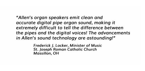 "Allen's organ speakers emit clean and accurate digital pipe organ sound, making it extremely difficult to tell the difference between the pipes and the digital voices! The advancements in Allen's sound technology are astounding!"
