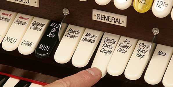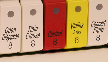 Allen designs and builds its own Theatre organ stop controls to provide the highest quality at affordable prices. From state-of-the-art Lumitech™ Stop Tabs with advanced LED's, to moving Stop Tabs, every control choice reflects Allen's uncompromising standards that ensure years of maintenance-free service.