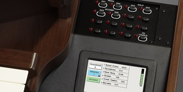 Over 250 different voices - organ stops, Grand Pianos, orchestral, keyboard and percussion voices