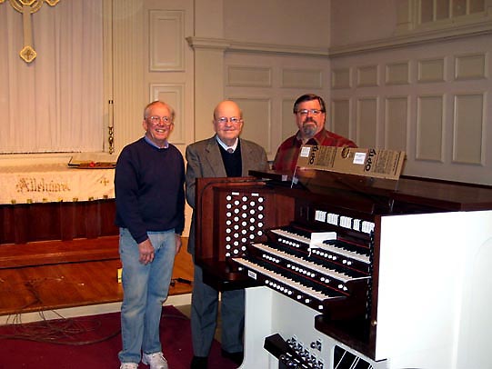 Roger Mansen, representing G. Paul Music, and Ken Delong and Hugh Findlay of Hyannis Federated Church |