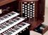 The console features: • Two-tone cherry-on-walnut finish • Square side overlays • Solid wood console back • Music rack: lattice theatre-style, lighted, adjustable • White stop tabs (black MIDI On Choir) • Drawknobs: black stems, white faces • Reeds and Orchestrals engraved in red; Couplers engraved in green • Gold-tone Division divider strips • S-style keycheeks • Keyboards: black sharps, white naturals; red felt between manuals • White pistons (red Tutti I and Tutti II) • Chrome toe studs with red felt • Pedalboard: Black sharps, maple naturals • Lift-lid bench with molding • Allen Vista™ • EAC™ (Expanded Audio Capabilities) |