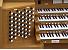 Drawknobs: black stems with white faces; reeds engraved in red; sequential numbering