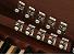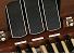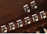 Pedalboard: black sharps, maple naturals; expression nameplates mounted on pedalboard