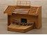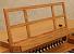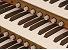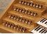Keyboards: rosewood sharps, white naturals; parallel keyboards; red felt above manuals