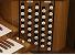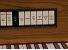 Keyboards: walnut sharps, white naturals; red felt above manuals
