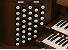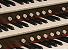 Keyboards: black sharps, white naturals; red felt above manuals