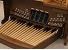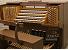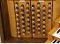 Keyboards: black sharps, white naturals; red felt above manuals