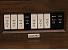 Pedalboard: black sharps and maple naturals; expression nameplates mounted on pedalboard