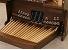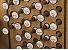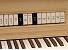 Pedalboard: walnut unstained sharps and maple naturals; expression nameplates mounted on pedalboard