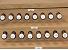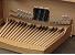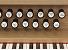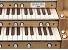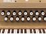 Keyboards: parallel, walnut sharps, white naturals, red felt above manuals